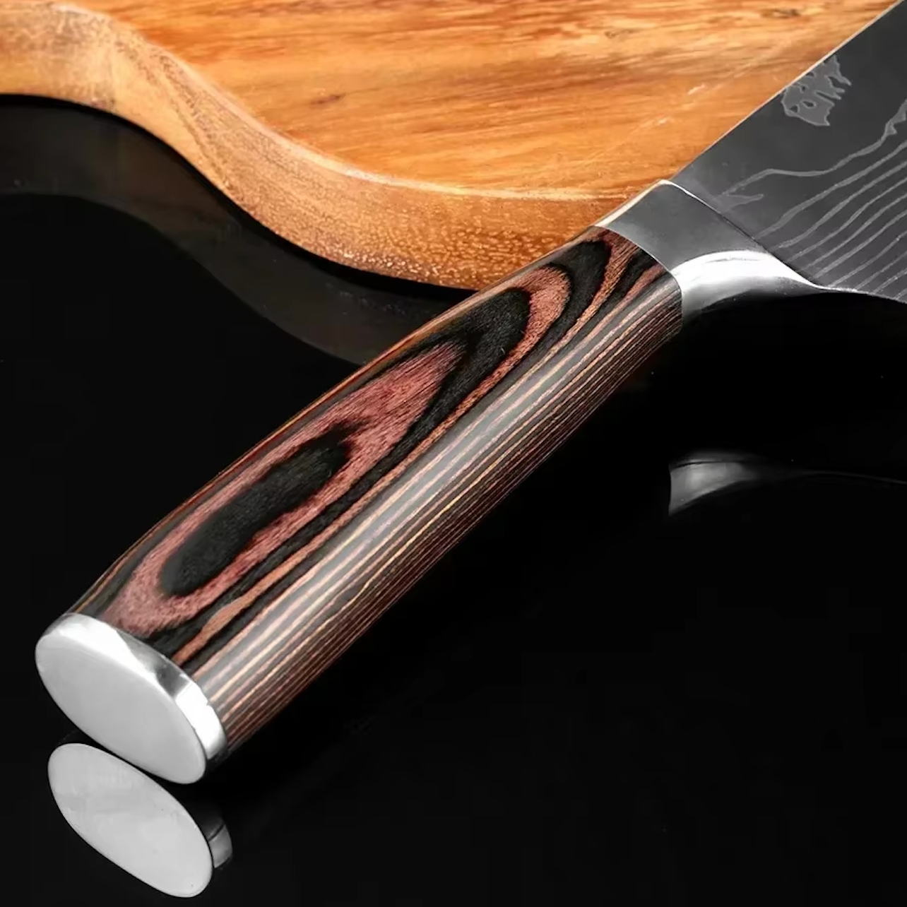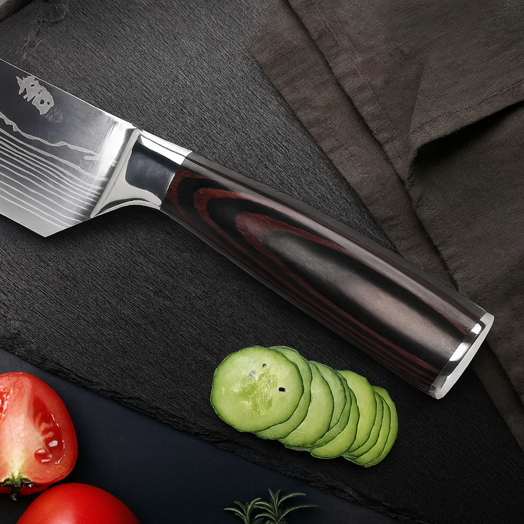 Avec Kurogane™, vous ne choisissez pas un simple couteau : vous optez pour un outil de chef. Lames ultra-tranchantes, équilibre parfait et motif damas (gravure laser) pour un style iconique et des découpes nettes au quotidien.